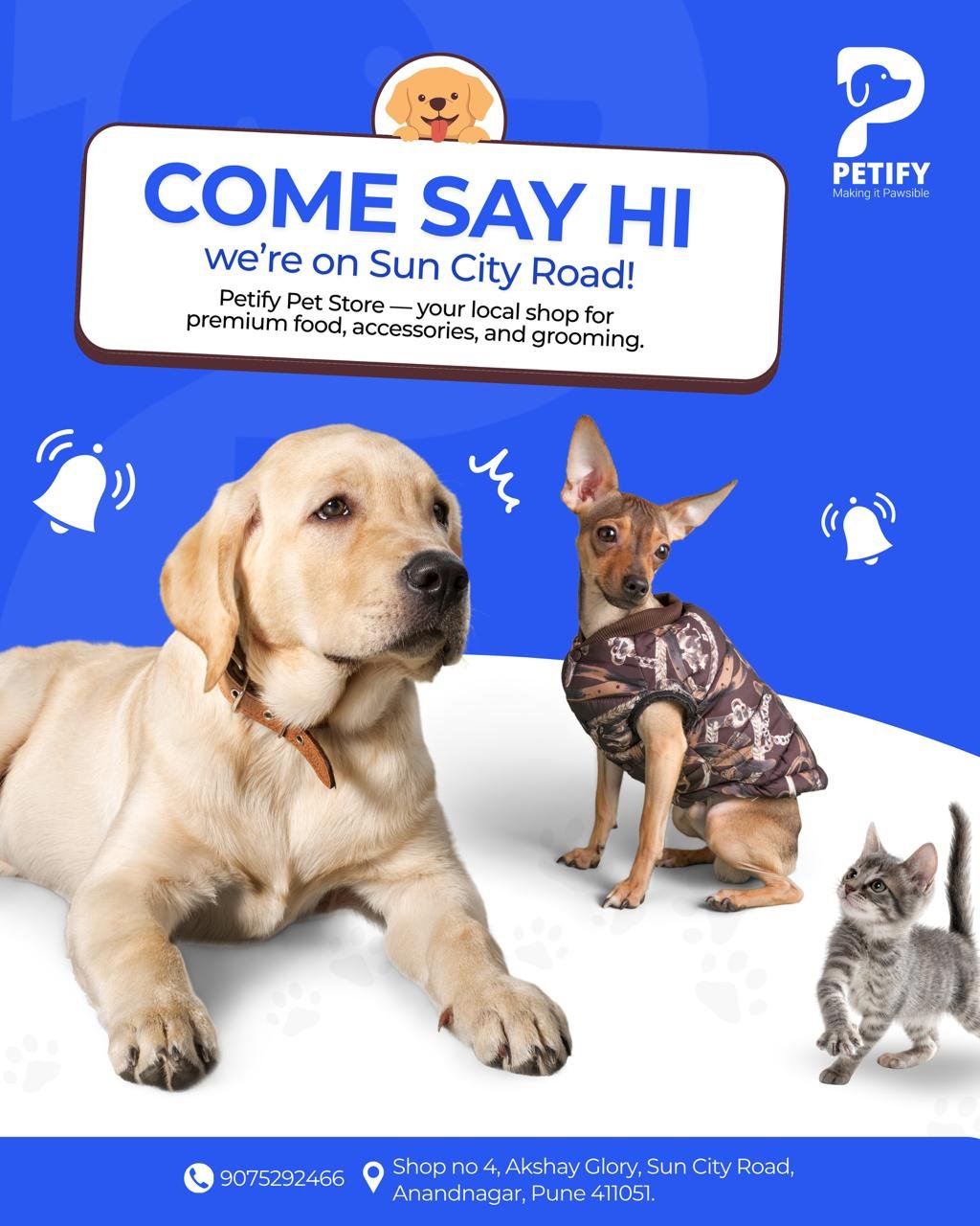 Looking for a pet store in Sinhagad Road? Petify Pet Store offers premium pet food & supplies, pet grooming services, pet health & wellness products, and pet clothing & accessories. We provide high-quality dog food in Pune and online pet food delivery for your convenience. ✔ Best pet shop in Pune for top-quality products ✔ Dog pet shop in Pune with expert-recommended brands ✔ Online pet store in Pune – Order & get doorstep delivery Visit us today for the best pet store experience in Pune